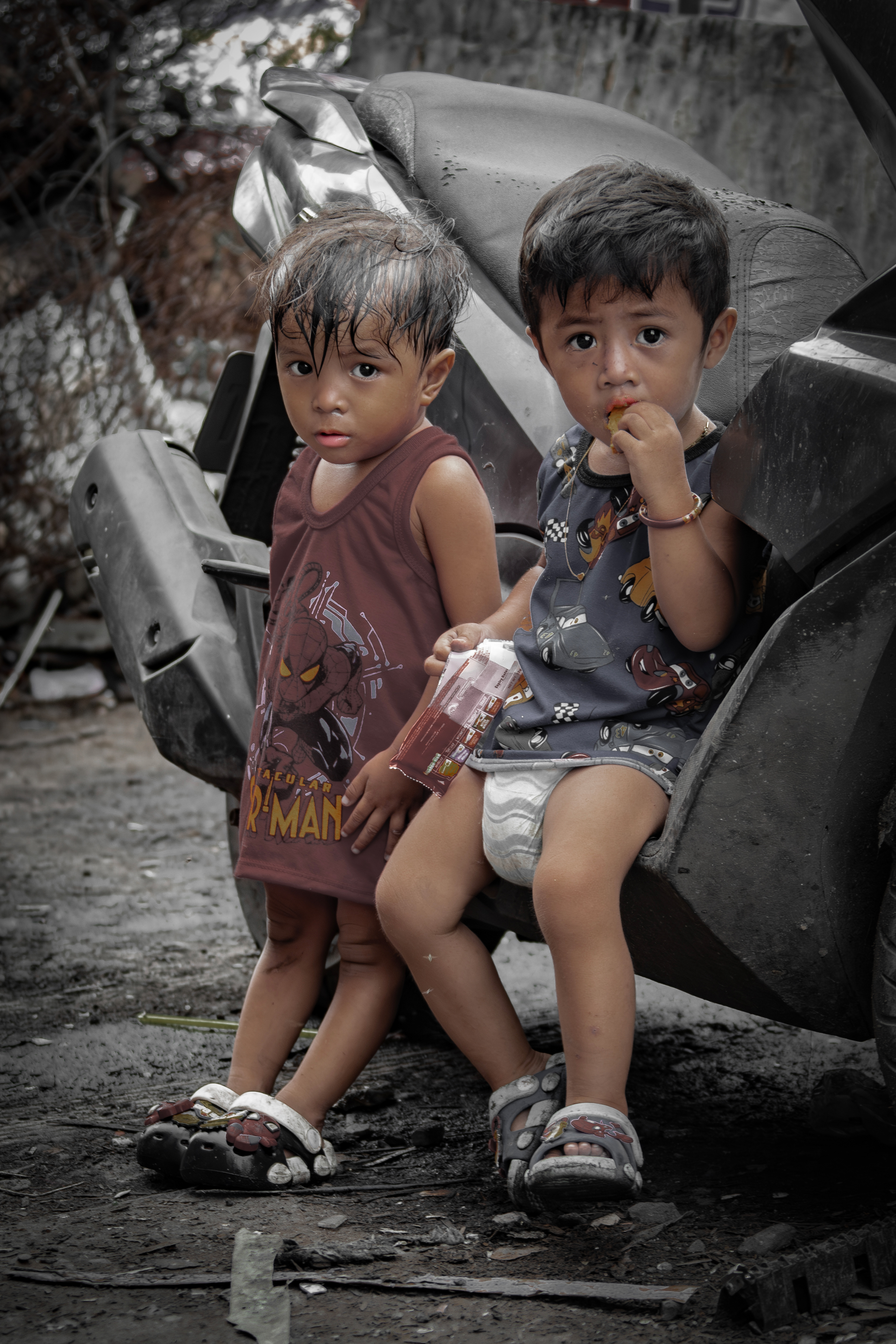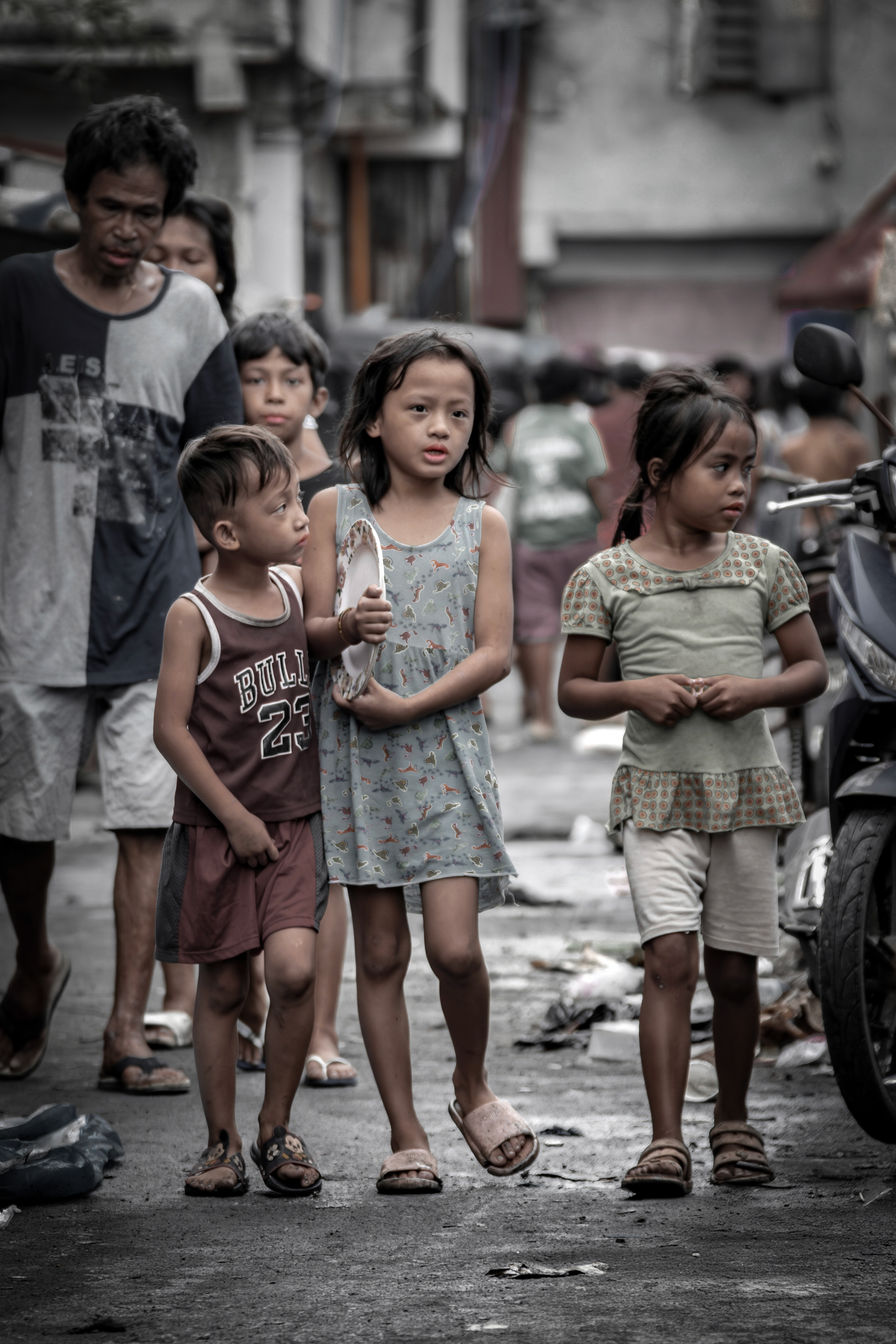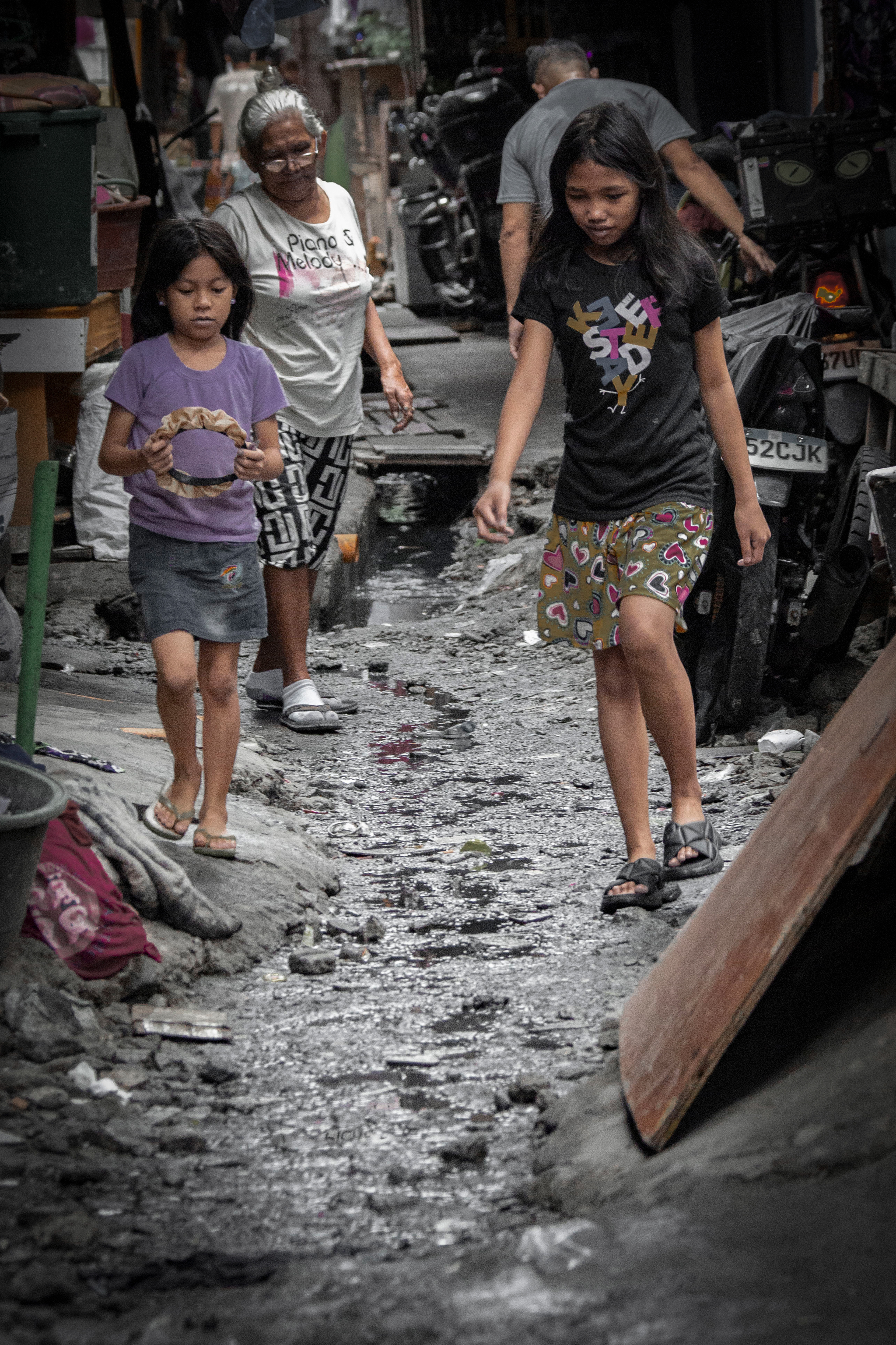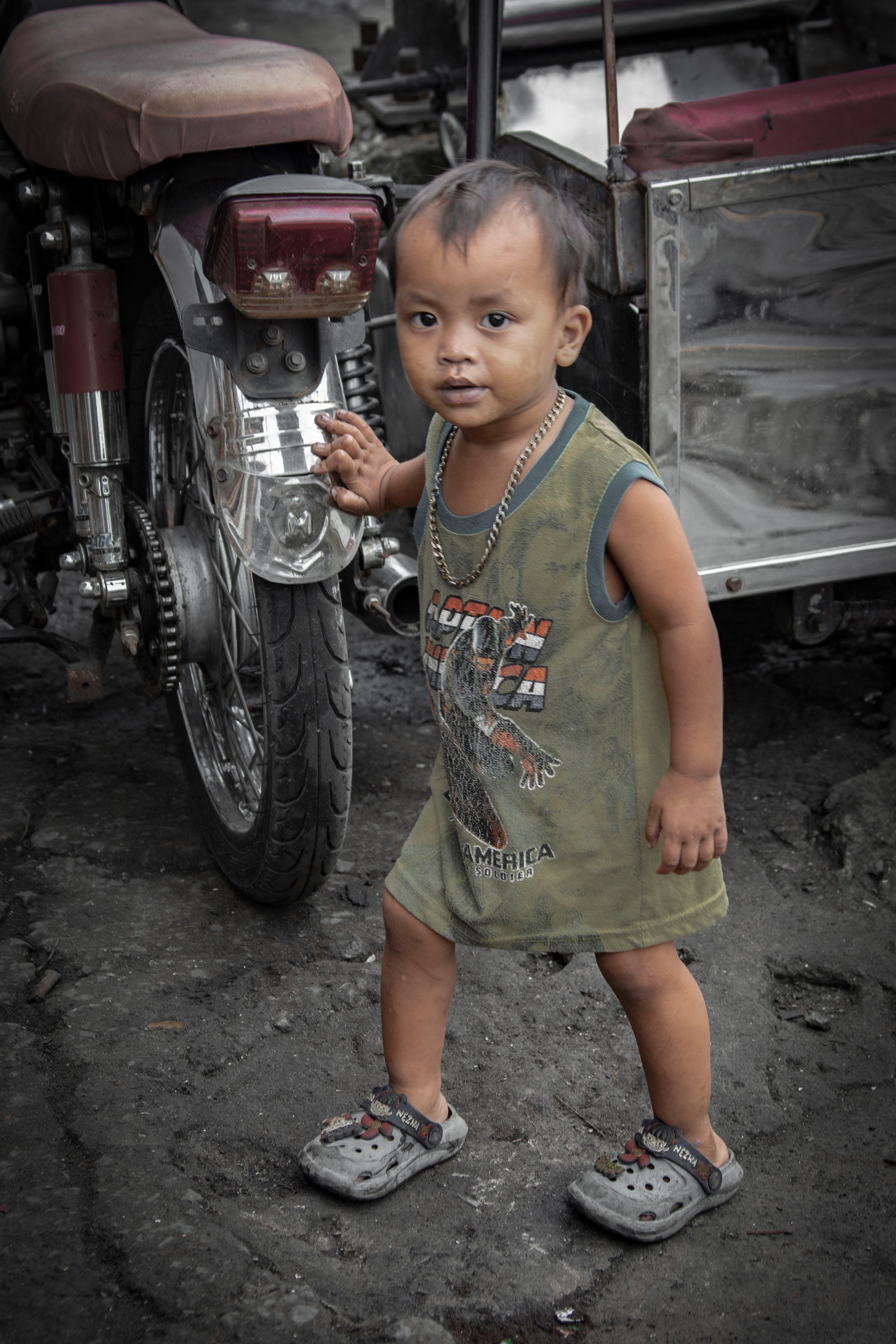 この町で生まれ、この町で育まれる子どもたち。とにかく子どもが多い。家族愛に満ちた笑顔の一方で愛情に枯渇した子どもたちも存在する。不衛生な地面の上を履物がなく裸足で歩き、なにひとつ満たされることない子もいる。破傷風は大丈夫なのだろうか?幼いときから重い宿命を背負って生きていることを目の当たりにして身につまさられるのだ。Children are born and raised in this town. There are so many of them. Behind the smiles of loving family members, there are children who are starved of love. Some walk barefoot on unsanitary ground, without shoes, and never feel satisfied with anything. I wonder if they'll get tetanus? It's sobering to see that they live with a heavy destiny from a young age.