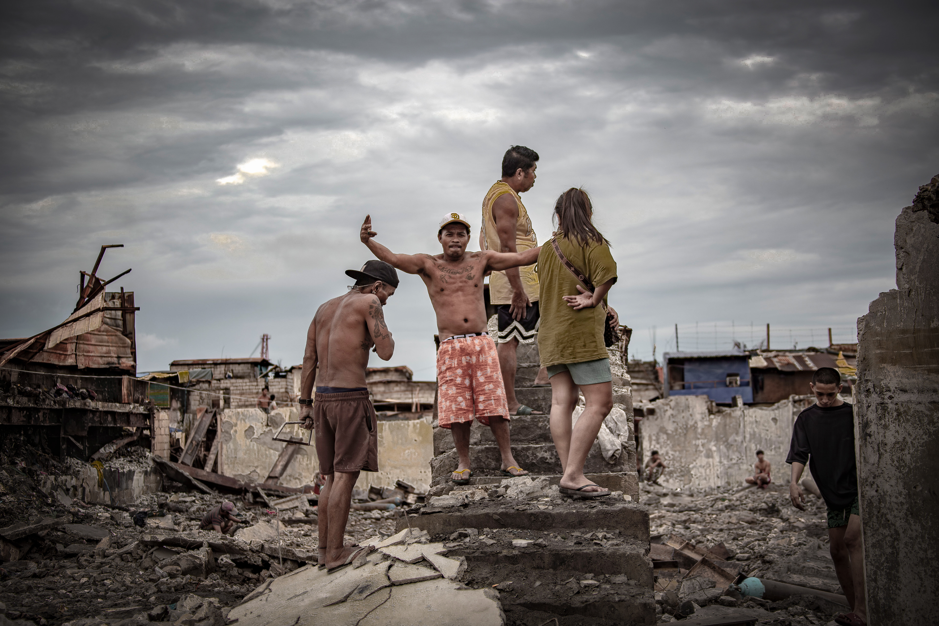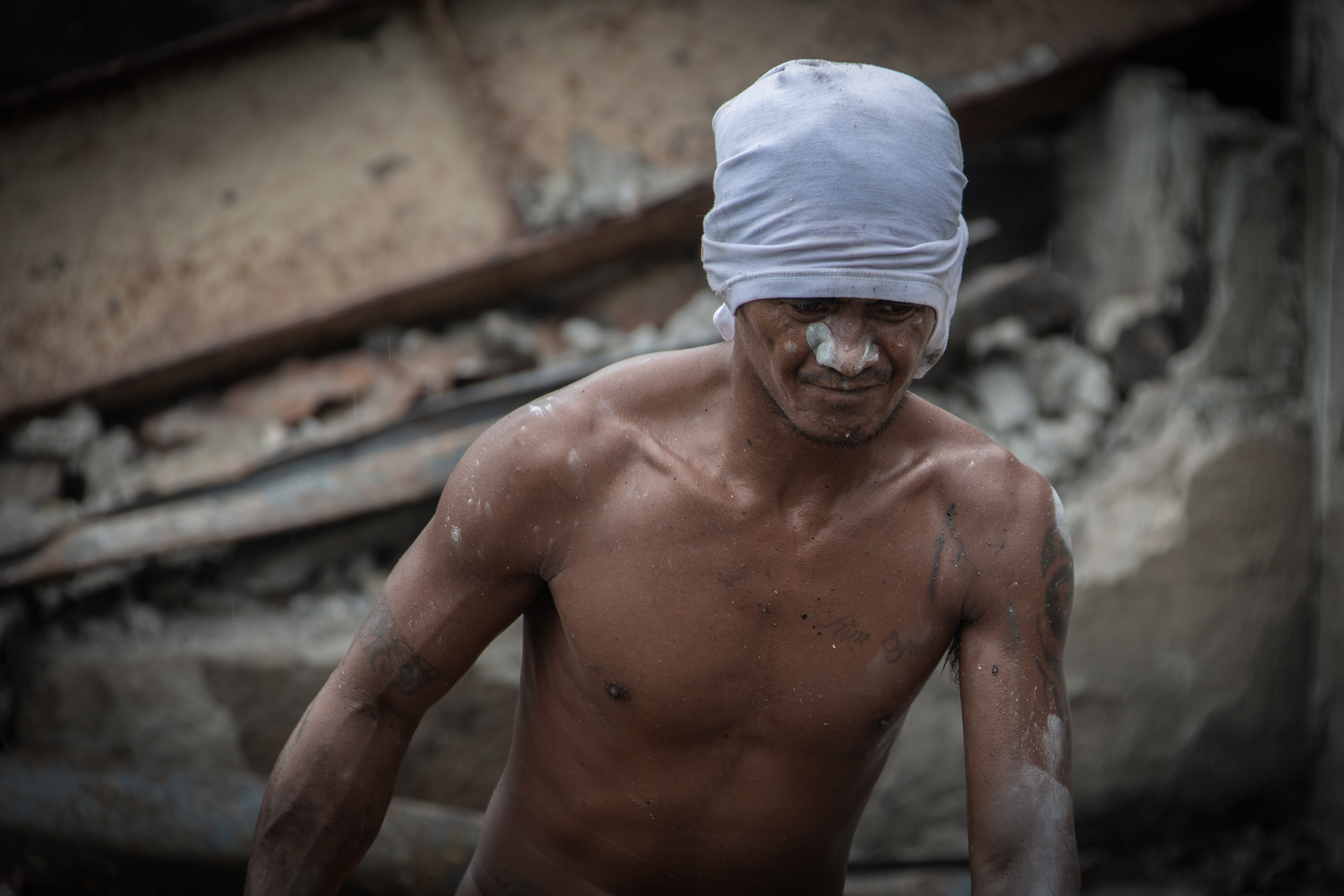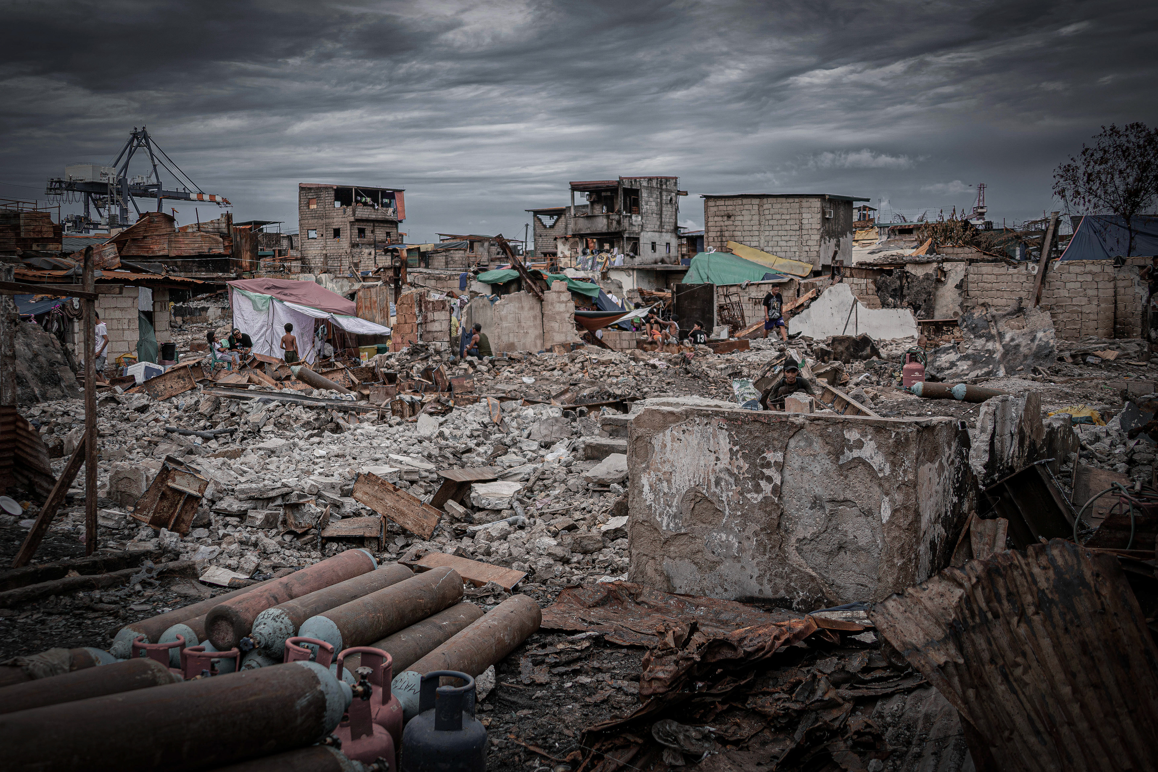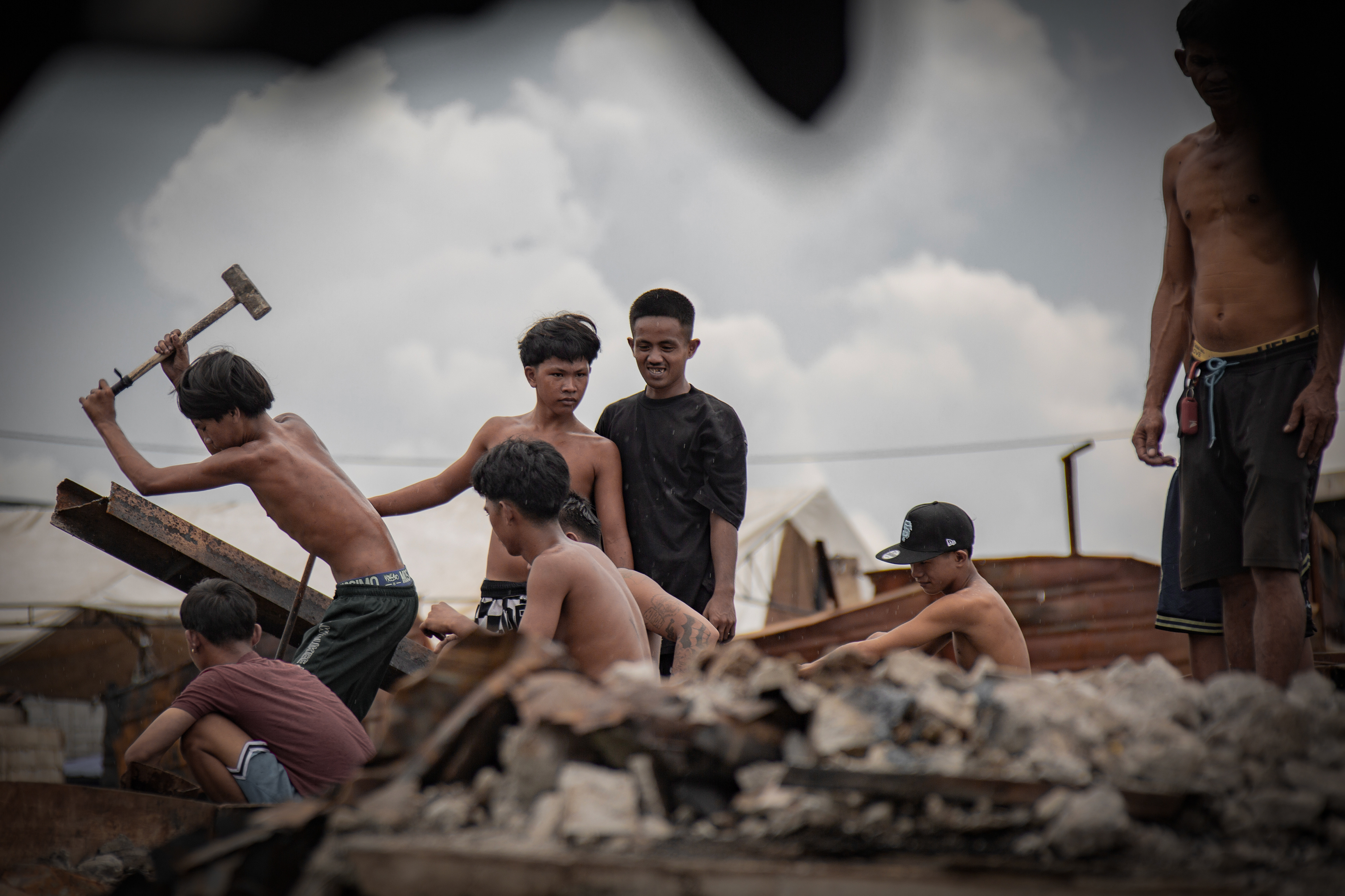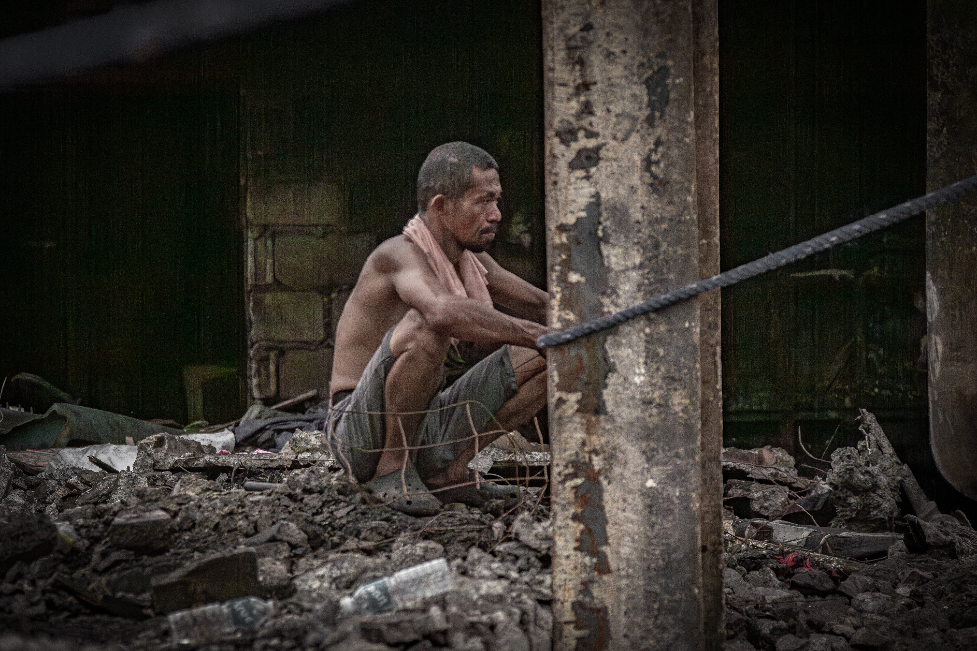 私が現地に行く5日前に大規模な火災があったばかり。密集した住宅はおよそ150棟が失われた。焼け野原には重機もなく。まともな道具すらない。寡黙に人力でガレキを片付ける漢たちの姿に心を打たれた。そして温かい笑顔で受け入れてくれた住人たちには感謝する。1日も早くよみがえってさらに豊かになることを心から祈る。A major fire had occurred just five days before I visited the area. Due to the close proximity of the buildings, it seems that around 150 buildings were lost. There was no heavy machinery in the burnt ruins. Not even proper tools. I was moved by the sight of the men silently clearing away the rubble by hand. I am also grateful to the residents who welcomed me with warm smiles. I sincerely hope that the area will recover as soon as possible and become even more prosperous.